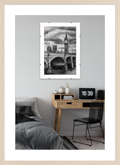 Фоторамка дерев'яна 50х70 під фото 40х60 багет: DL1906-01 Світле дерево (з глянсовим склом 1-1.5мм, паспарту біле, двп) Emoj