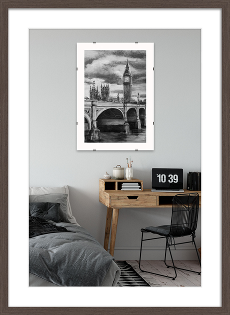 Фоторамка дерев'яна 50х70 під фото 40х60 багет: DL1906-04 Темне дерево (з глянсовим склом 1-1.5мм, паспарту біле, двп) Emoji