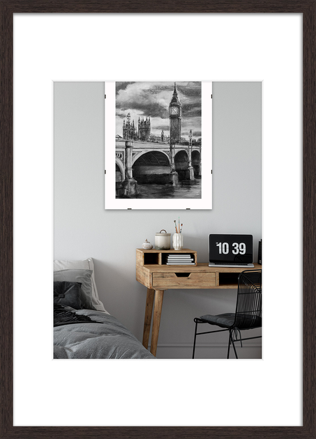 Фоторамка дерев'яна 42х60 під фото 30х40 багет: DL1906-06 Темне дерево (з акриловим склом 1.5мм, паспарту біле, двп) EmojiFr
