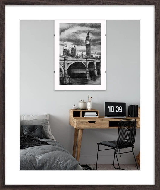 Рамка для фото дерев'яна 50х60 під фото 40х50 багет: DL1906-04 Темне дерево (з глянсовим прозорим пластиком 0.8мм, паспарту