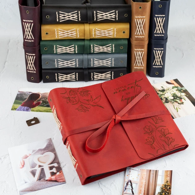Персоналізований шкіряний фотоальбом, подарунок на річницю, 40 аркушів крафт, Coral, Malina Leather