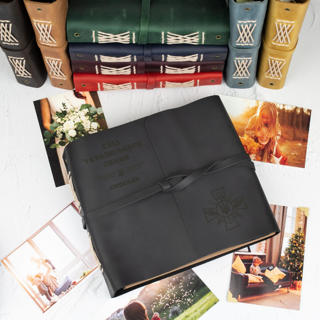 Фотоальбом для спогадів із гравіюванням Схід українського сонця, 40 аркушів чорних, Black, Malina Leather
