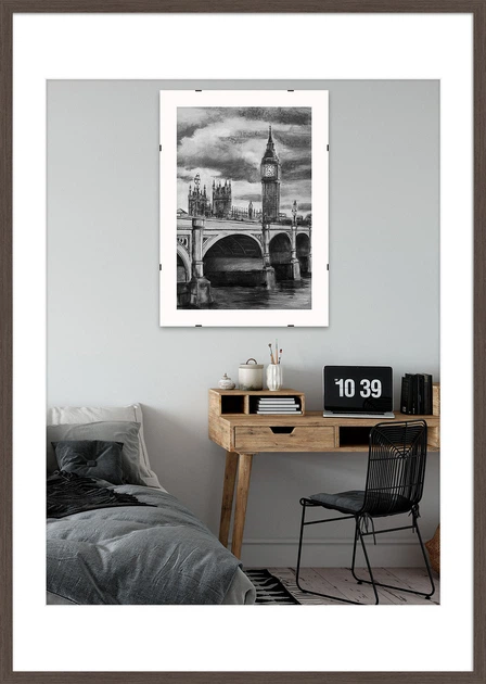 Фоторамка дерев'яна 70х100 під фото 60х80 багет: DL1906-05 Темно-сіре дерево (з акриловим склом 1.5мм, паспарту біле, двп) E