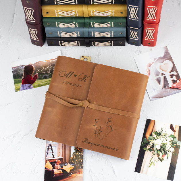 Альбом для фотографій УКРАЇНКА з шкіряною вставкою та вашим написом FILWOOD