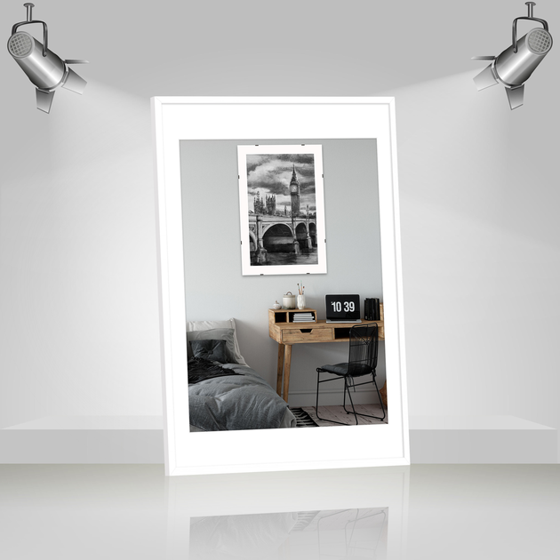 Рамка для фото дерев'яна 70х100 під фото 60х80 багет: DL1805-02 Білий (з антивідблисковим склом 2мм, паспарту чорне, двп) Em