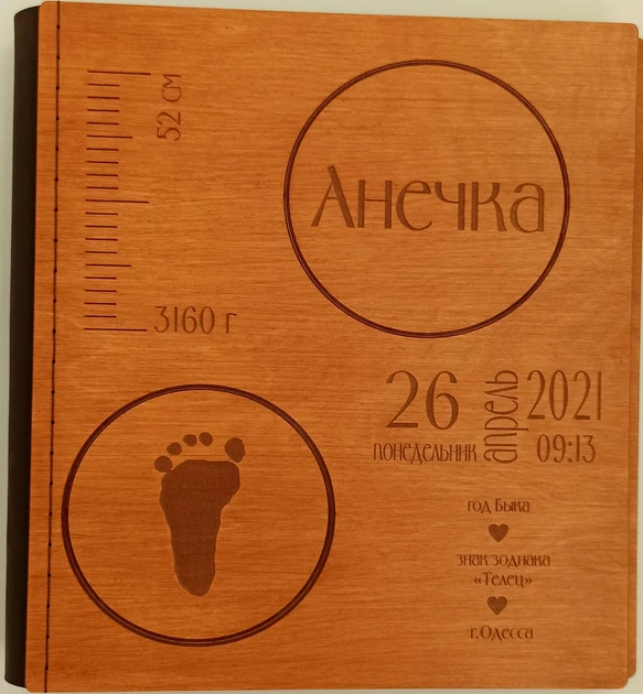 Дитячий фотоальбом на 250 фото - 50 сторінок з шкіряною вставкою індивідуальне гравірування FILWOOD