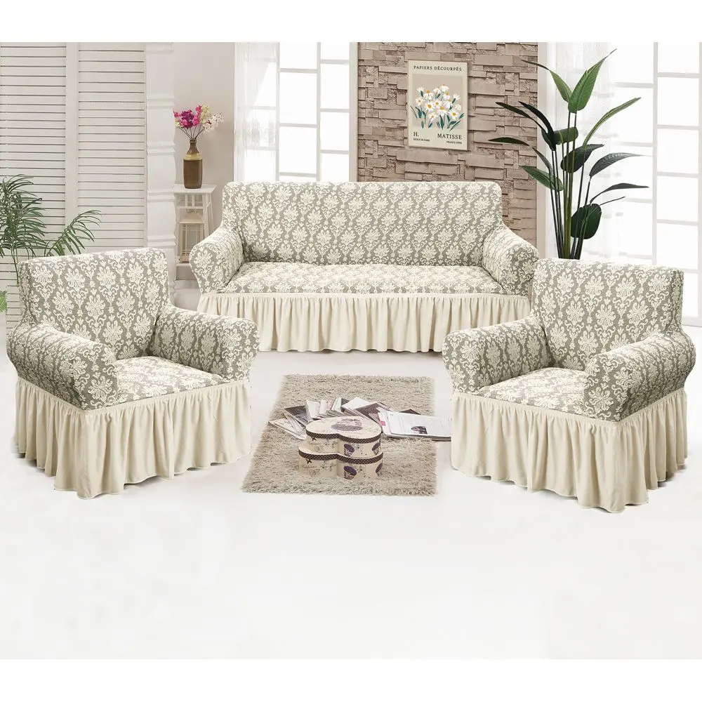 Набір чохлів на диван та крісла Love You жакардовий кремовий (81103)