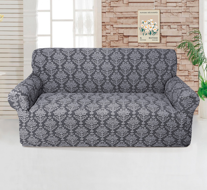 Чохол на диван тримісний жакардовий без оборки сірий Love You (A-025319)