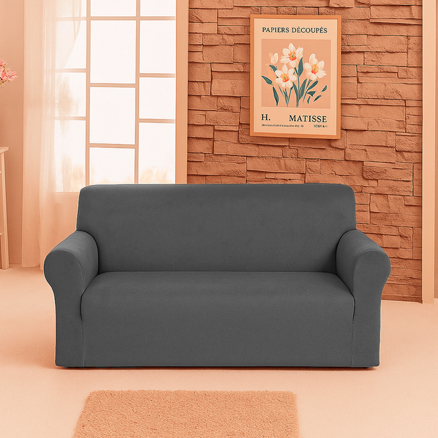 Чохол на диван 2-місний Велюр темно-сірий Love You (A-041053)