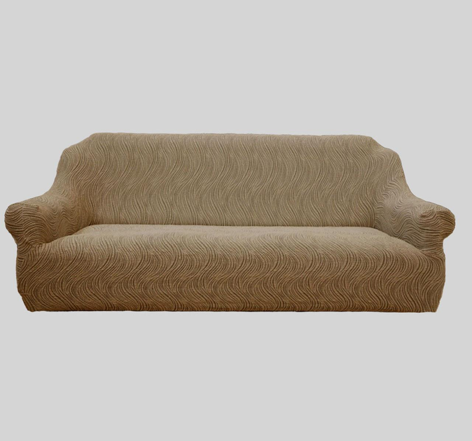 Жаккардовий чохол на диван без спідниці колір бежевий Хвиля