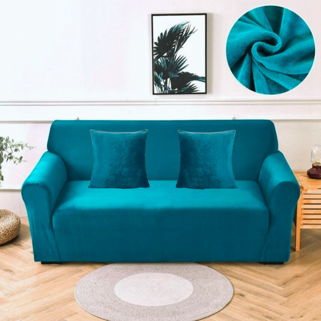 Захисний чохол на двомісний диван Diana Textile Plush Velvet 145-185 см, Бірюзовий