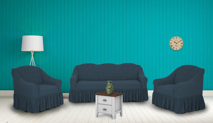 Чохли для меблів Naperine диван і два крісла букльований жаккард з спідницею Графіт