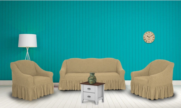 Чохли для меблів Naperine диван і два крісла букльований жаккард з спідницею Бежевий