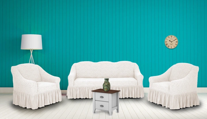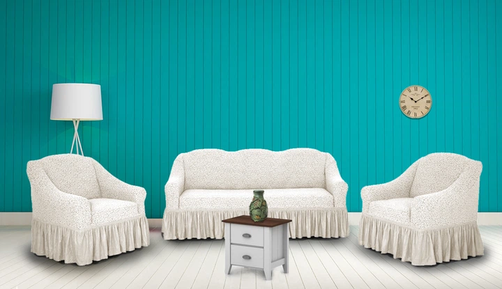 Чохли для меблів Naperine диван і два крісла букльований жаккард з спідницею Кремовий