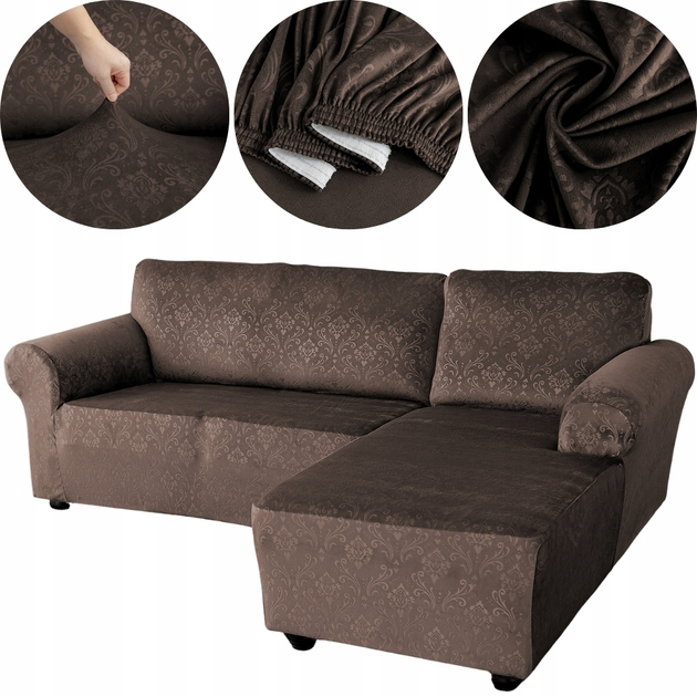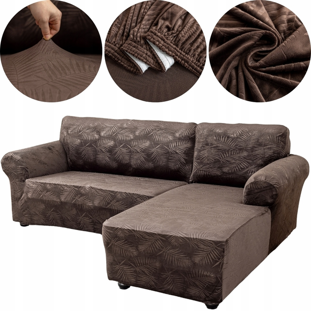 Чохол на кутовий диван 2+2, еластичний велюр, оксамит Domidekor Velvet Emboss, коричневий (3822)