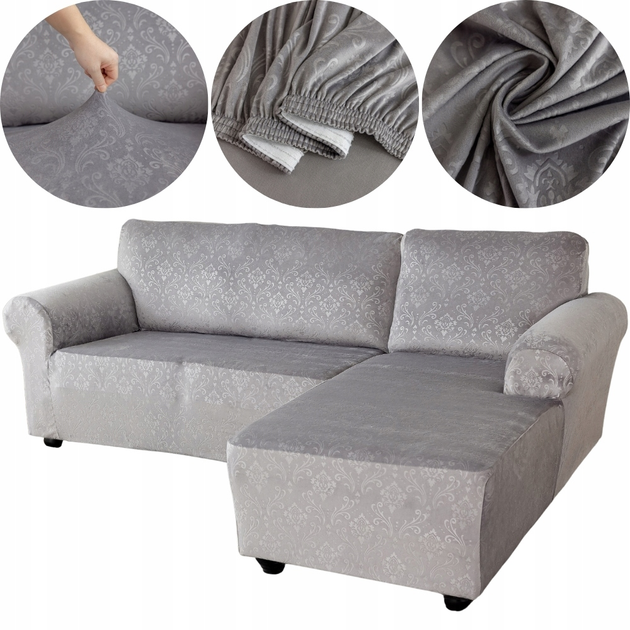Чохол на кутовий диван 2+2, еластичний велюр, оксамит Domidekor Velvet Emboss, сірий (3797)