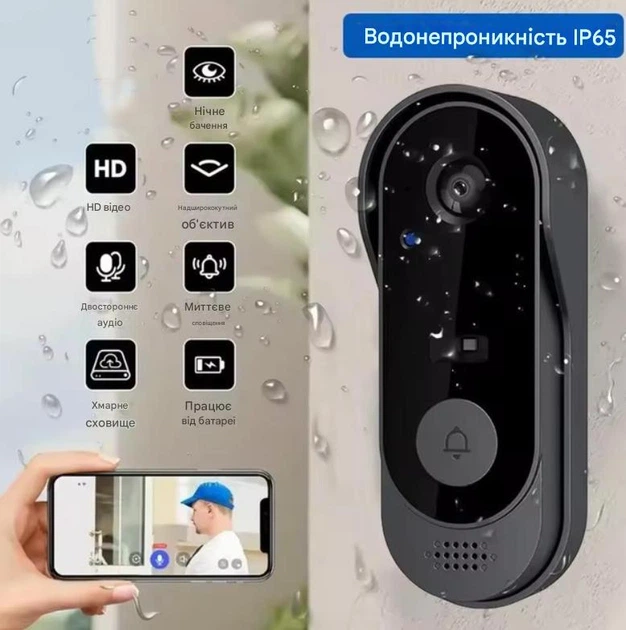 Дверний дзвінок з бездротовою камерою Wi Fi Tuya Smart Life Doorbell відеодзвінок для дому з нічним баченням