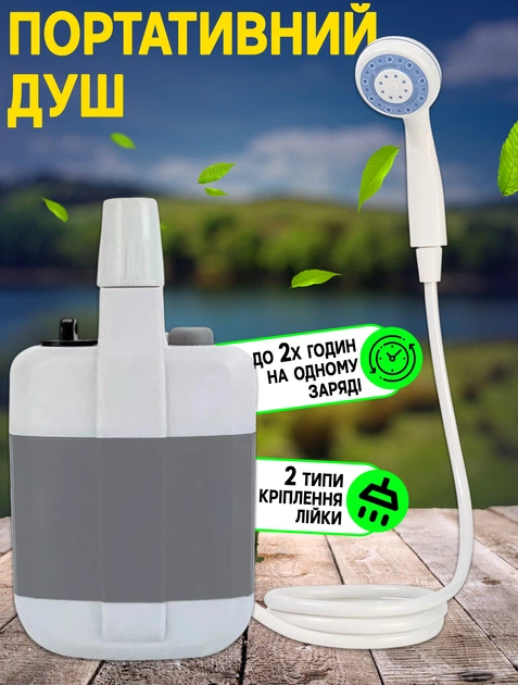 Душ портативний акумуляторний переносний для кемпінгу та дачі на Li-ion 2000 мАг Portable Outdoor Shower автономний з насосо