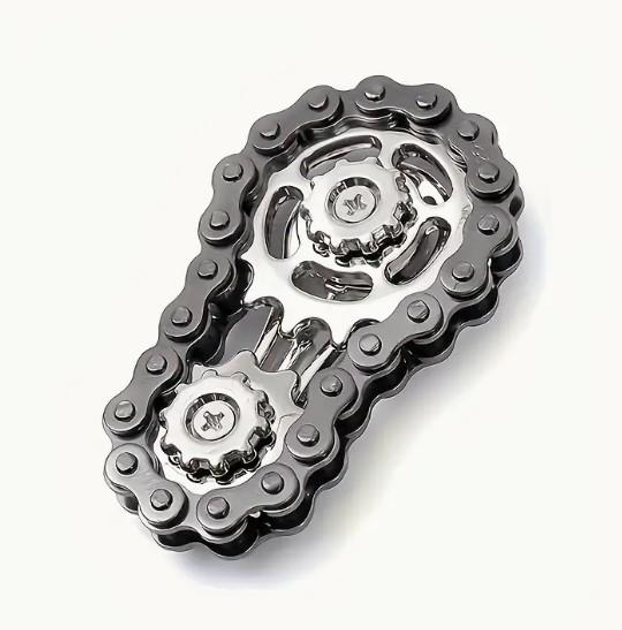 Фіджет металевий спінер-антистрес іграшка обертається з ланцюжком і шестернями Dark Grey Spiner Fidget