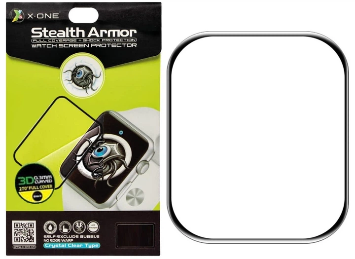 Захисна плівка Apple Watch 7 41 mm з чорною рамкою протиударна 0.3mm 3D Stealth Armor Watch Screen Protector, X-One