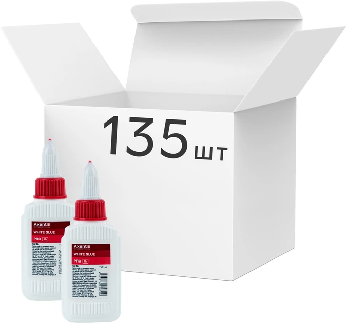 Упаковка клею ПВА Axent PRO Канцелярський 50 мл х 135 шт (7151-A)