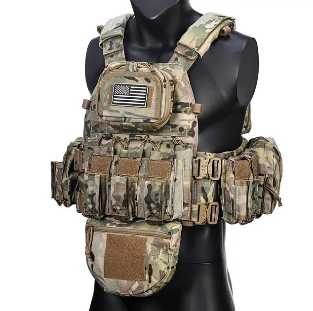 Плитоноска-тактичний швидкознімний військовий жилет YAKEDA Мультикам з підсумками та сумкою напашник Multicam VT-8190