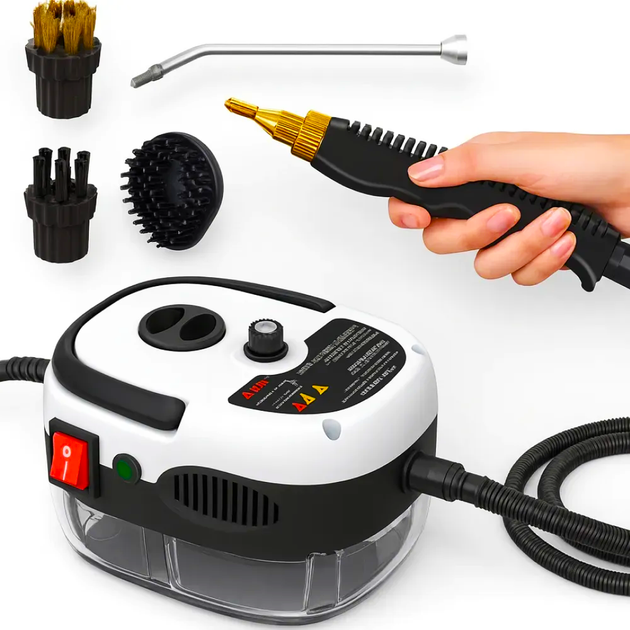 Пароочисник портативний для дому, 2500Вт, 900мл + 4 насадки / Пароочищувач (L)