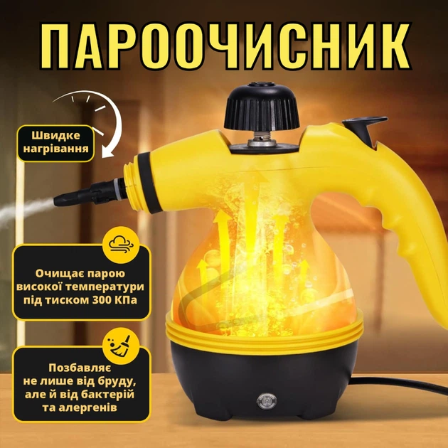 Універсальний ручний пароочисник з функцією відпарювача, домашній клінер для дому парогенератор для прибирання та дезінфекці