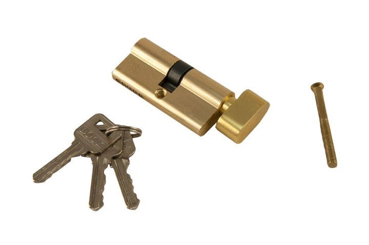 Циліндр англійський FZB 70 мм вузький РВ для замків ключ поворотник силумін золото (D-IT22-C)