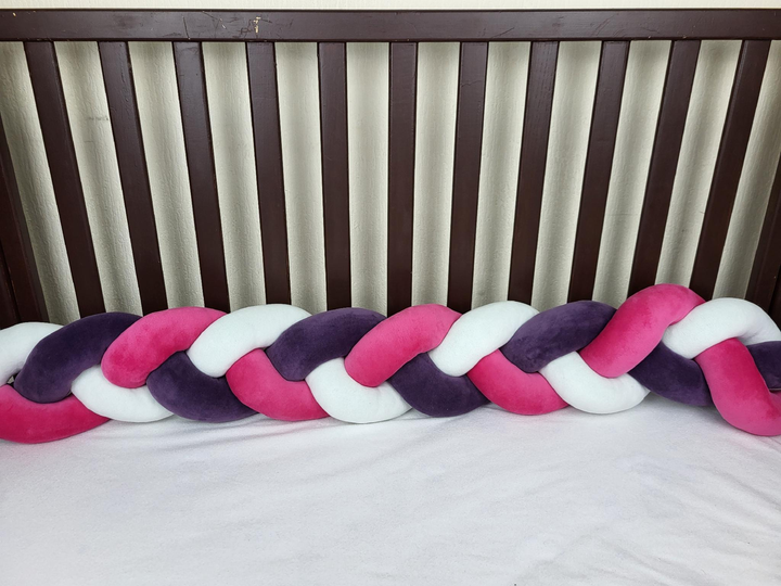 Бортик у ліжечко Уютний Стиль трьохпрядна косічка 120*18см біло-рожево-бордова