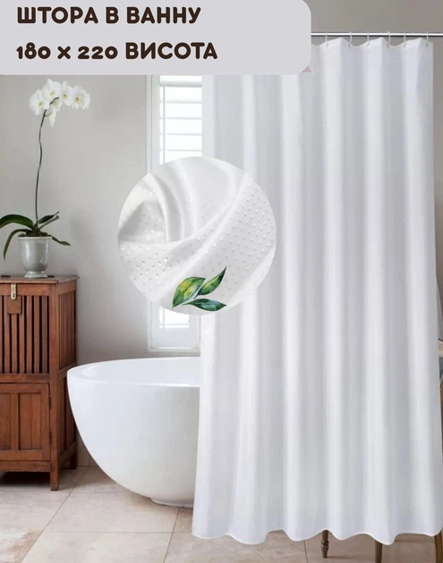 Шторка для ванної кімнати та душової довга висота 180х220 см з Піка біла тканинна