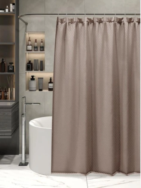 Шторка для ванної 180х220 см тканинна щільна з поліестеру світло-коричнева