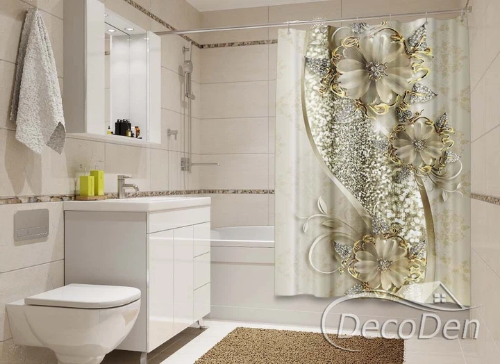 Фото Шторка для ванної кімнати PHOTODECOR "3D Квіти зі стразами та метелики"