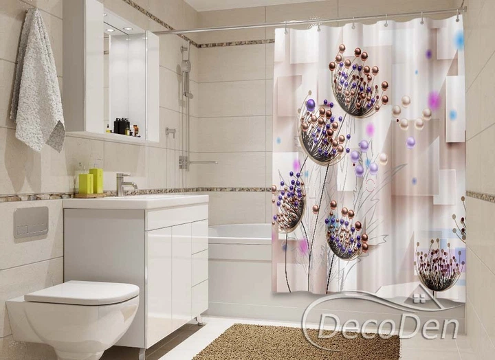 Фото Шторка для ванної кімнати PHOTODECOR "3D Квіти та стрази"