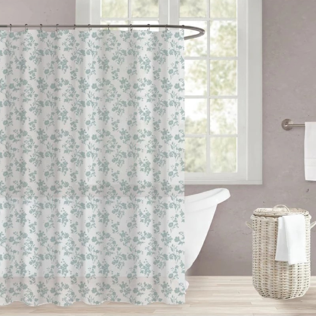 Шторка для ванної та душу 180x180 см водонепроникна з пластиковими гачками Білий з зеленим (JDT-0847166)