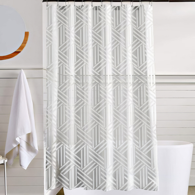 Шторка для ванної та душу 180x180 см з гачками Біла зі сріблястим принтом (JDT-0847188)