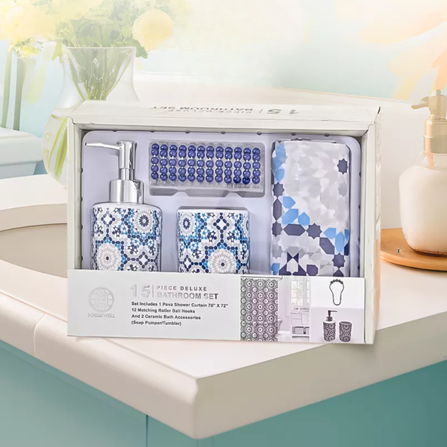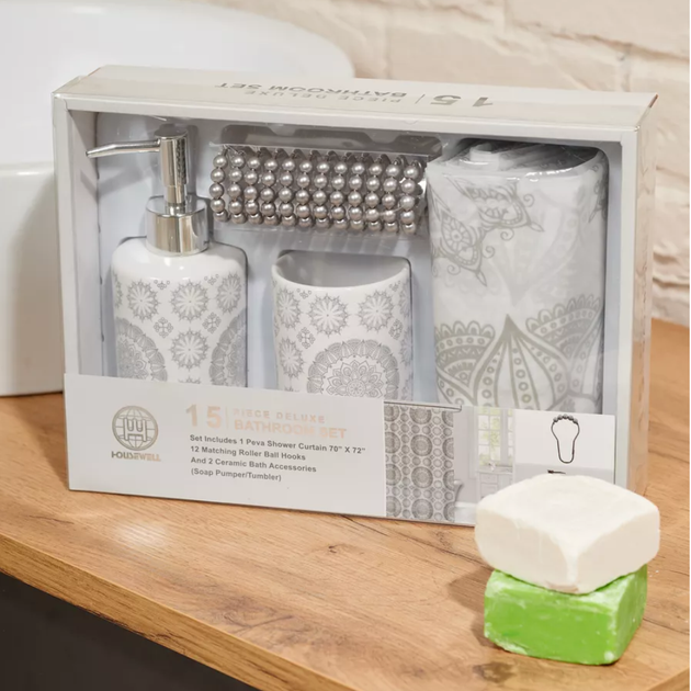 Шторка для ванної та душу набір аксесуарів, комплект приладдя у ванну кімнату: шторка, стакан для щіток, дозатор для мила SC