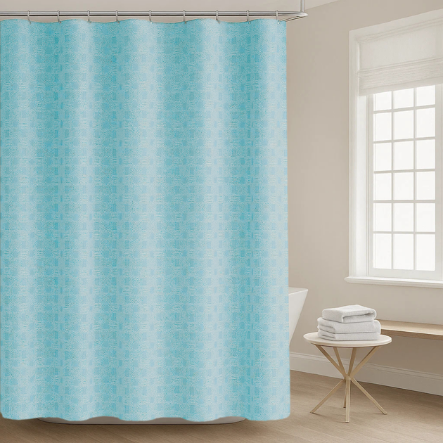 Шторка для ванної та душа з підкладкою подвійна 178x183 см з гачками бірюзовий візерунок