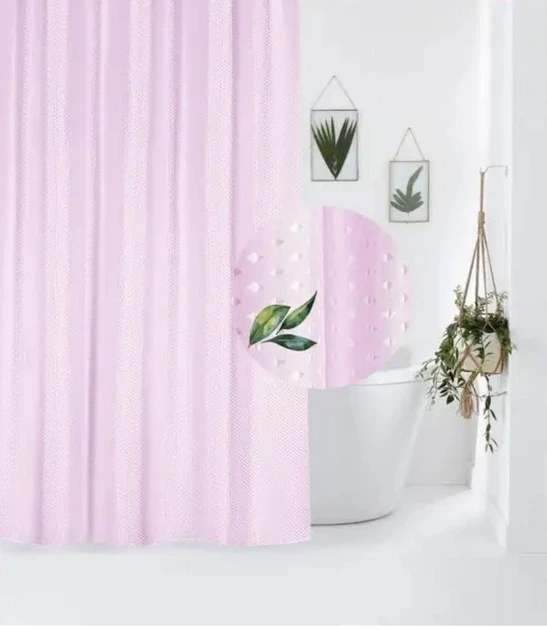 Тканинна штора для ванної кімнати 180х200 см рожева піка
