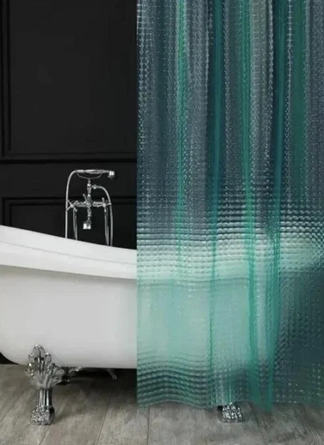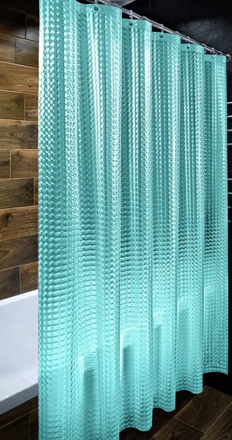 Шторка у ванну силіконову з дизайном 3Д ефект 180х180 бірюзова в кубик