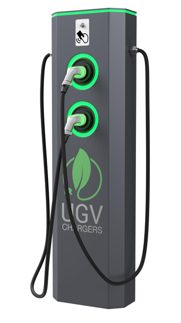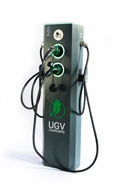 Зарядна станція для електромобіля UGV Chargers Напольна Модель G AC 22 + 22 Квт (кабель Тип2 + кабель Тип2, 3 фази) UGV-A44A