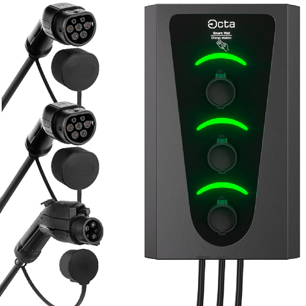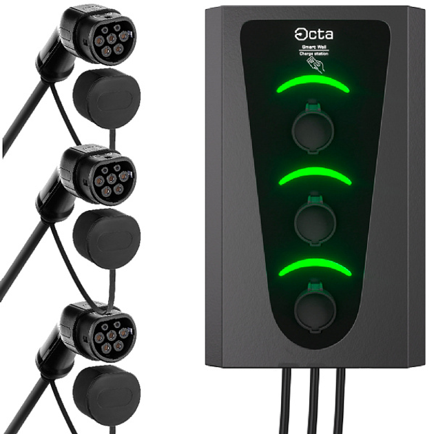 Зарядна станція комерційна 66 квт 3-порту sw366-s22-s22-s22 smart wall Octa Energy, SW133