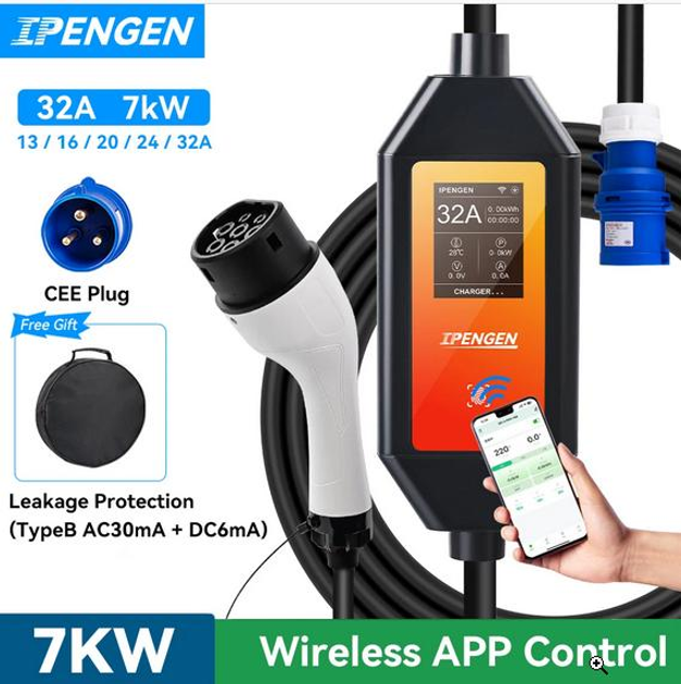 Регулируемое зарядное устройство для электромобиля IPENGEN с WI-FI GBT, Type1, Type2 - 7 кВт 32 А