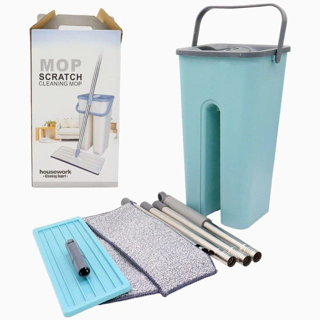 Швабра лента з самовіджимом і відром 8л для миття підлог Scratch Mop&Bucket синій
