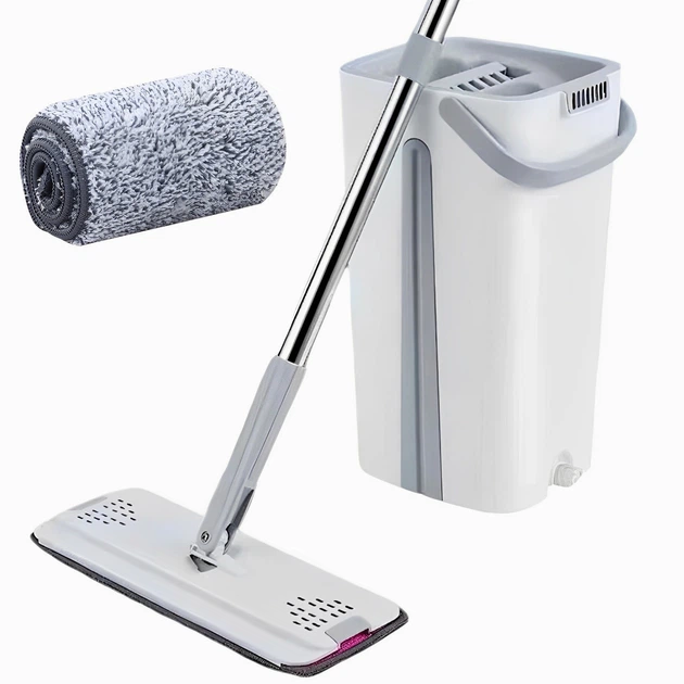 Швабра з відром 6л з автоматичним віджиманням мікрофібра для підлоги біла комплект прибирання