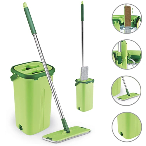 Комплект швабра ледар з відром 10 л Scratch Cleaning Mop Expert R-1+ (з віджимом і складною ручкою,змінні насадки з мікрофіб