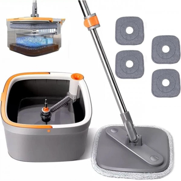 Швабра Efe plastics з автоматичним віджиманням, відром 12 л + 2 змінні насадки