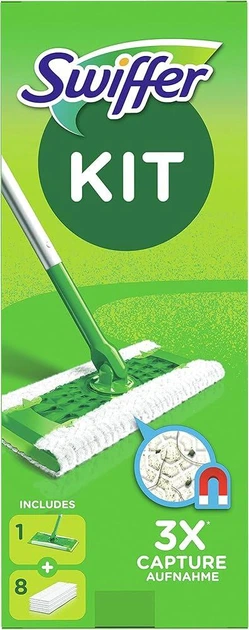 Швабра вологого і сухого прибирання Swiffer Kit — Набір 8 сухих і 3 вологі серветки