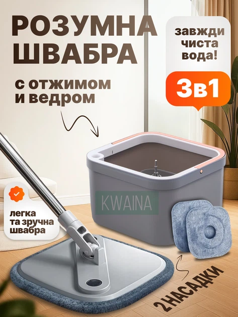 Комплект швабра з відром і автовіджимом квадратна з 2-ма мопами Turbo Mop TM-7811 Gray