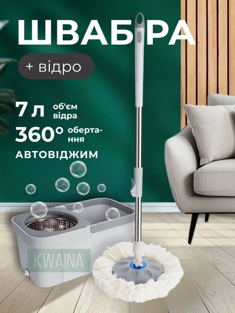 Набір для прибирання швабра ледар з автоматичним віджимом центрифуга + відро на 7 л, телескопічна ручка, Кругла